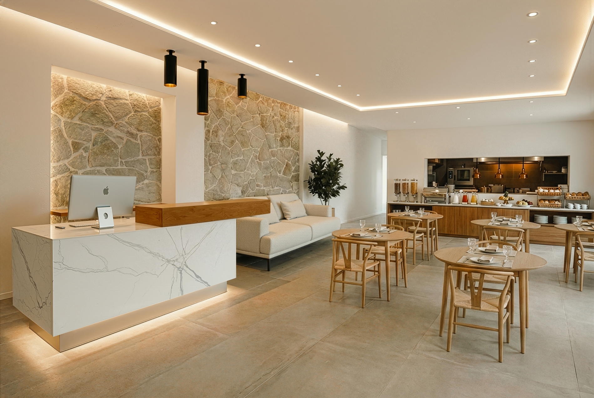 Clean lines, warm tones, and meticulous attention to detail give the space a sense of understated luxury and perfect harmony with the natural surroundings.